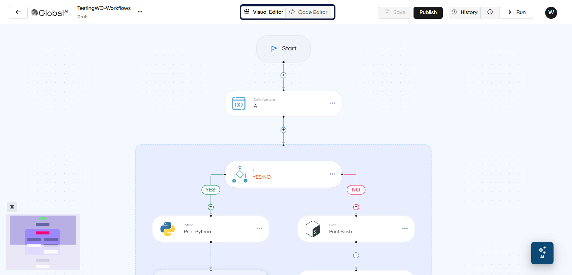 The Code Editor displays the raw configuration of your workflow (often in a YAML or JSON format). This is the "source of truth" that the Visual Editor is building behind the scenes.